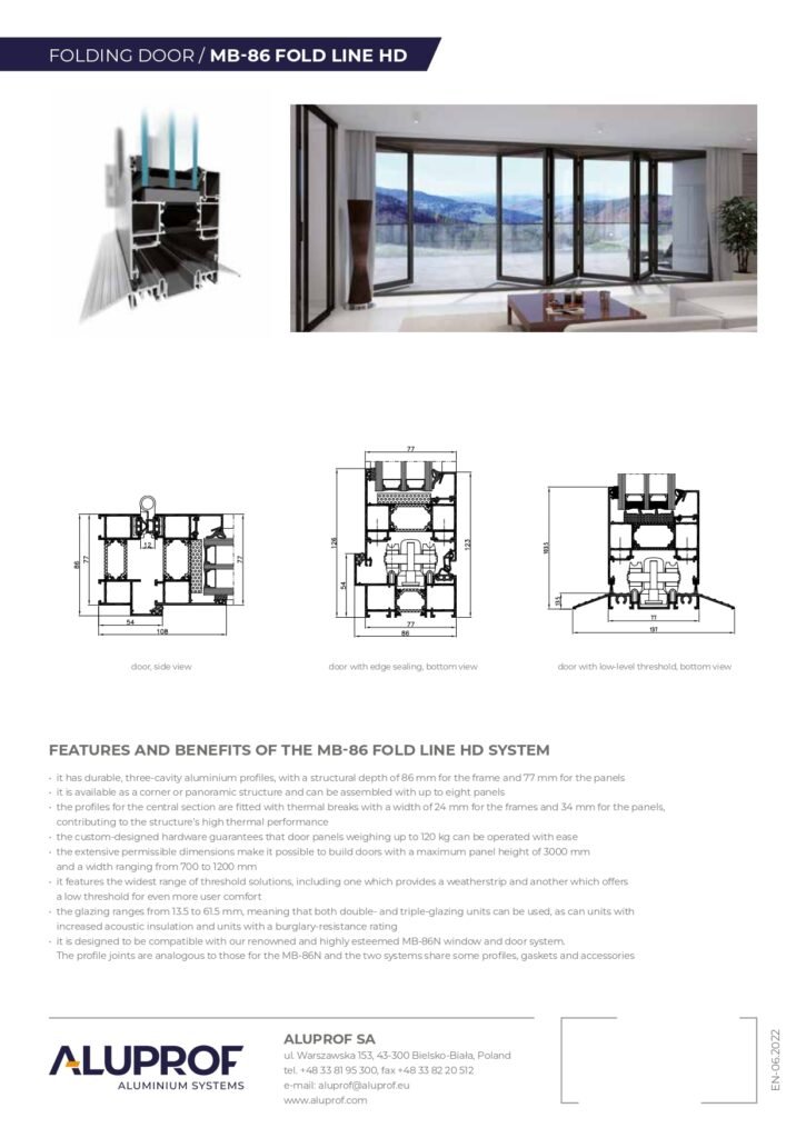 MB 86 FOLD LINE HD advanced sliding system for folding doors offers unprecedented flexibility, making it easy to connect your indoor environment with the outside world.