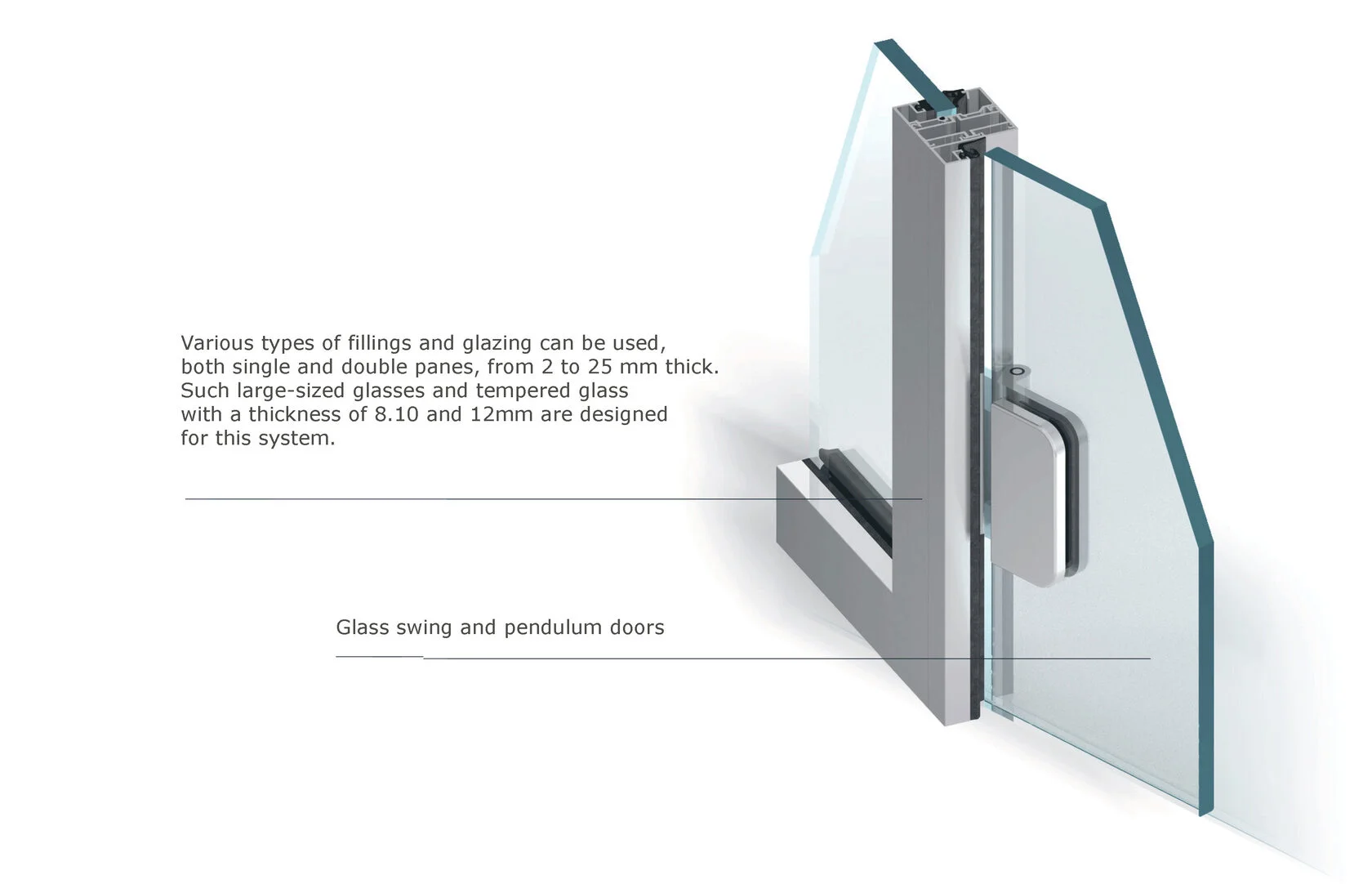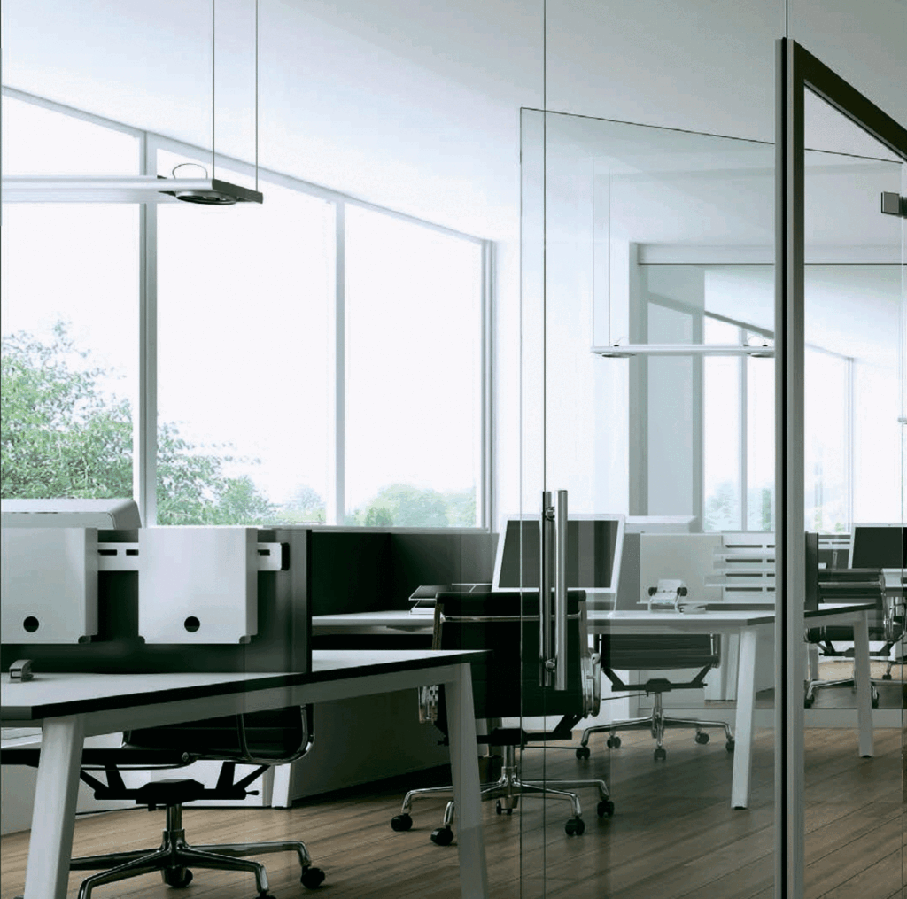 The system features a modern and minimalistic appearance that blends easily into any architectural scheme. Clean lines and no frames create a visually appealing space.
